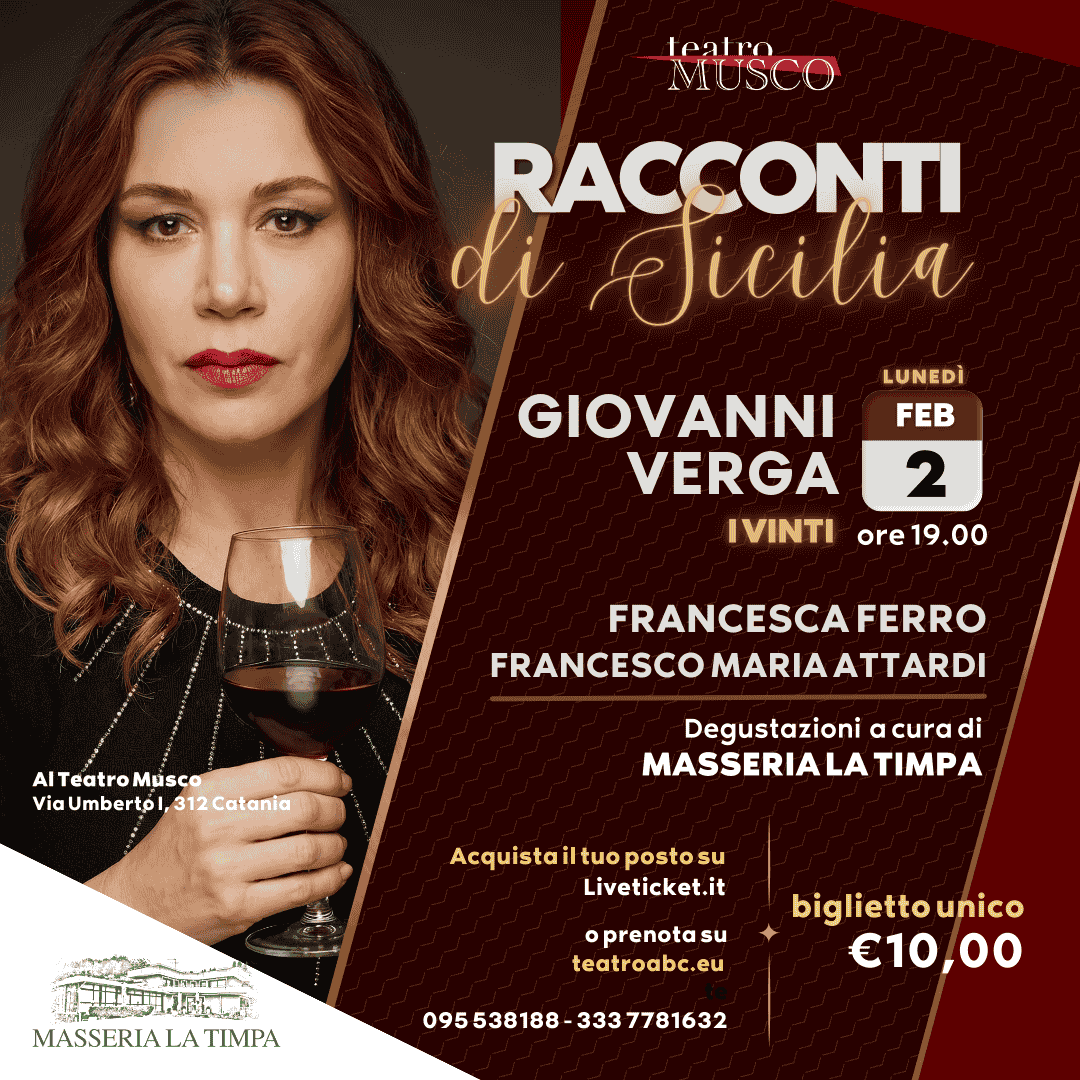 Questo reading è anche un’esperienza da attraversare con i sensi. Le parole di Verga si intrecciano ai sapori, perché la sua scrittura nasce dalla stessa terra da cui nascono il vino, il pane, il sale. Ascoltare Verga significa sentire una lingua che ha odore di mare, di fatica, di desiderio trattenuto.