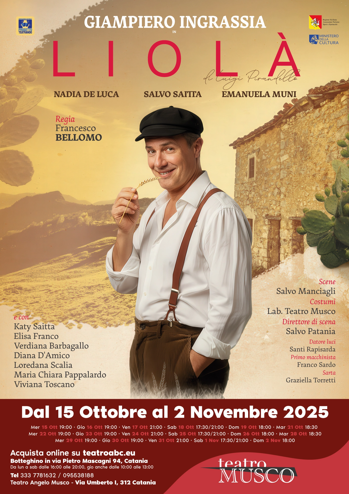 La sua regia valorizza l’anima corale e ironica della commedia, mantenendo intatta la tensione tra natura e convenzione. Giampiero Ingrassia interpreta Liolà con leggerezza scanzonata e maturità artistica. Nadia De Luca, interprete raffinata, porta in scena personaggi complessi con naturalezza magnetica. Salvo Saitta, volto storico del teatro siciliano, unisce carisma e rigore interpretativo.